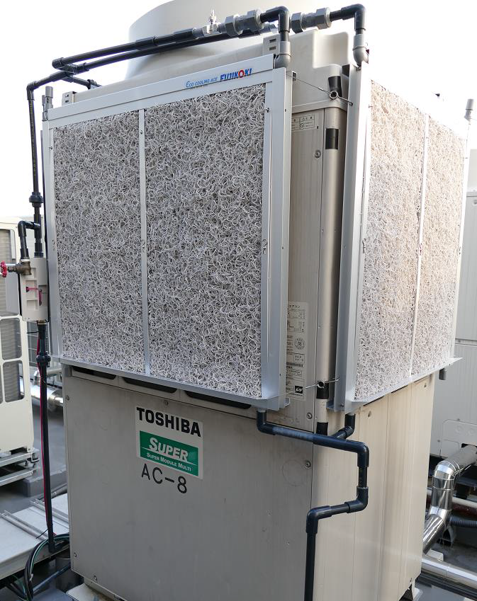 エコクーリングエースは、室外機周辺の空気を水の蒸発冷却で下げる間接冷却装置で、省エネ、機器保護の効果が期待できる装置です。既存の冷凍空調設備や新設設備に取付可能で、簡単なメンテナンスで長期運用ができます。